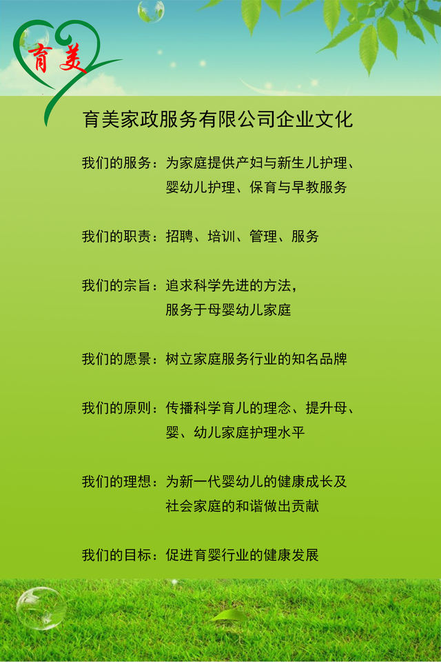 育美家政 專于婦嬰 來自華東 服務鄭州/育美家政服務有限公司是一家員工制管理(非中介)的公司。 主營業(yè)務:產婦護理和新生兒護理/0-3歲嬰幼兒護理/催乳按摩服務/月嫂和育嬰師培訓/家庭育兒入戶指導